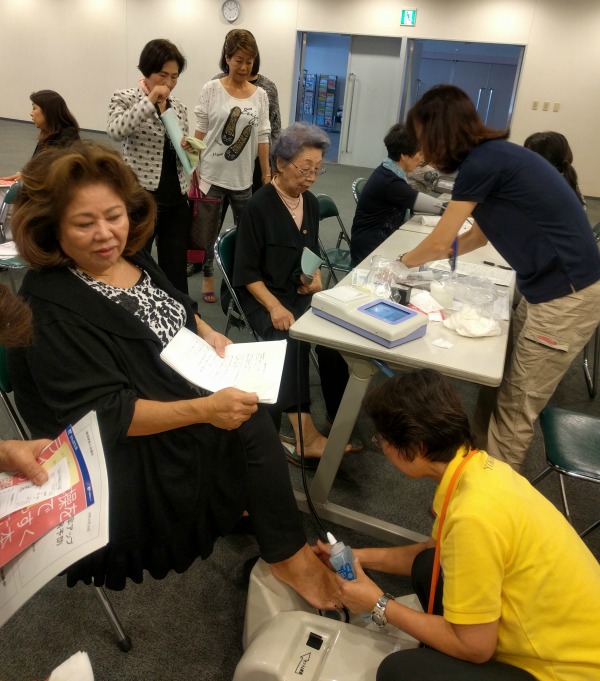 まず、骨密度及び血圧測定を行い、各人の骨密度や血圧をチェックしました。