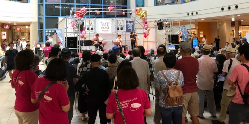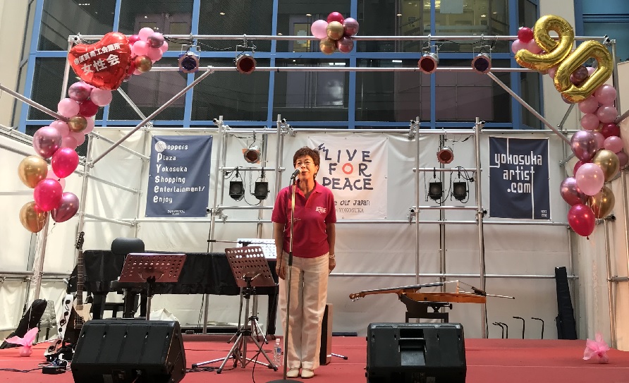 2018年7月22日(日)、横須賀商工会議所創立90周年記念事業として女性会主催の「JAZZ LIVE」がショッパーズプラザ横須賀2Fステージにて行われました。女性会会員26名が参加してくださいました。葛西会長の挨拶からはじまり、会員で協力して観客の皆様にお声掛けして女性会のチラシを配るなどひとつになり、この時を楽しみました。