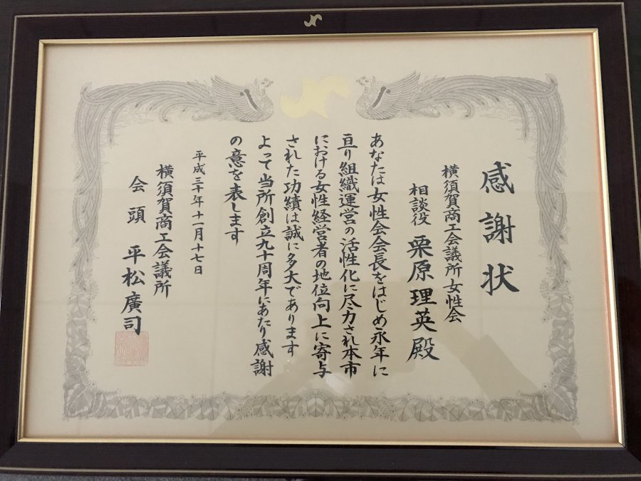 11月17日(土)横須賀商工会議所創立90周年記念式典にて栗原相談役が会頭特別表彰を受賞しました。