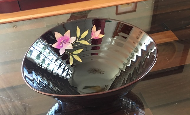 会津塗りのクレマチスの花が描いてある漆器の菓子器でした。