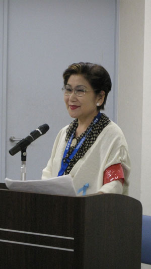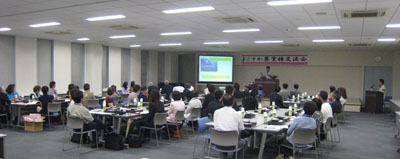 女性会会長の挨拶後、第1部として東芝ライテック株式会社の鈴木衛氏に講師をお願いして、『地球温暖化防止について』の講演して頂きました。地球温暖化に関する基礎情報から始まり、LEDランプの開発によりCO2排出をぐっと押さえることが出来るようになった話などを中心にお話し頂きました。どの家庭にもある電球を例にご説明頂いたので、より身近な話として聞くことが出来ました。