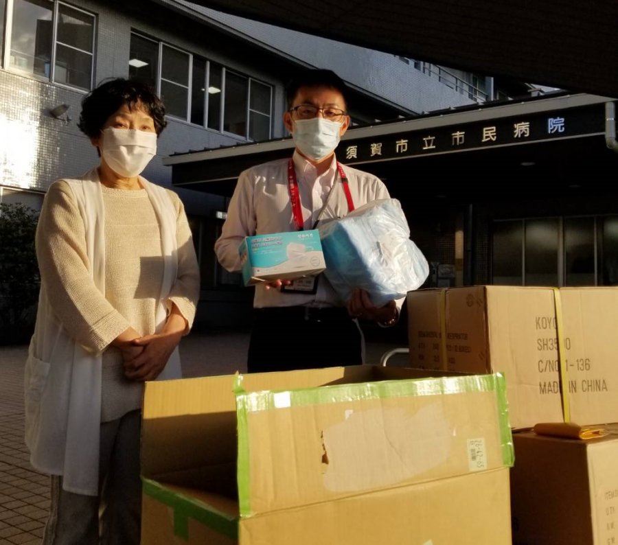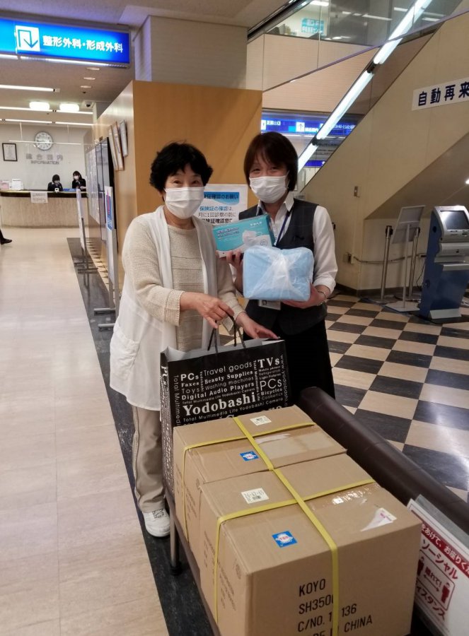 5月7日(木)横須賀商工会議所女性会は、横須賀共済病院、横須賀市民病院で働く医療従事者へマスク1,960枚、ガウン20枚を寄付しました。