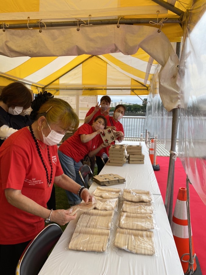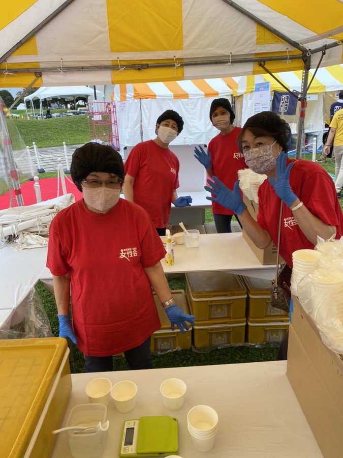 女性会では会員の参加協力により、赤いお揃いのTシャツを着用しお手伝いをさせて頂きました。