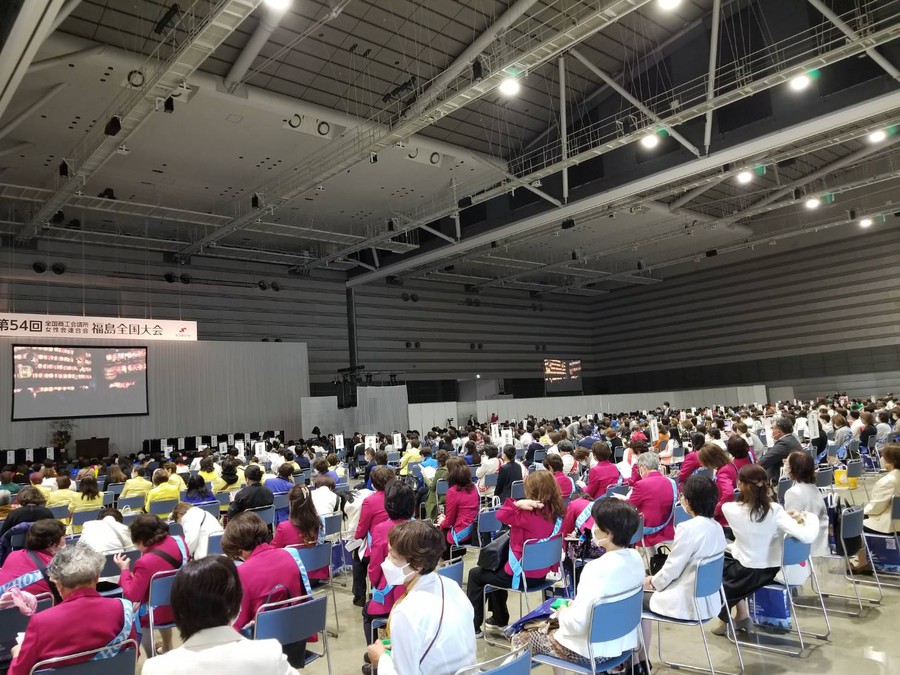コロナで一年延期となった福島全国大会が、11年前の震災の際の避難場所『ビックパレットふくしま/多目的展示ホール』で、全国から1500人女性会会員が集結して開催されました。