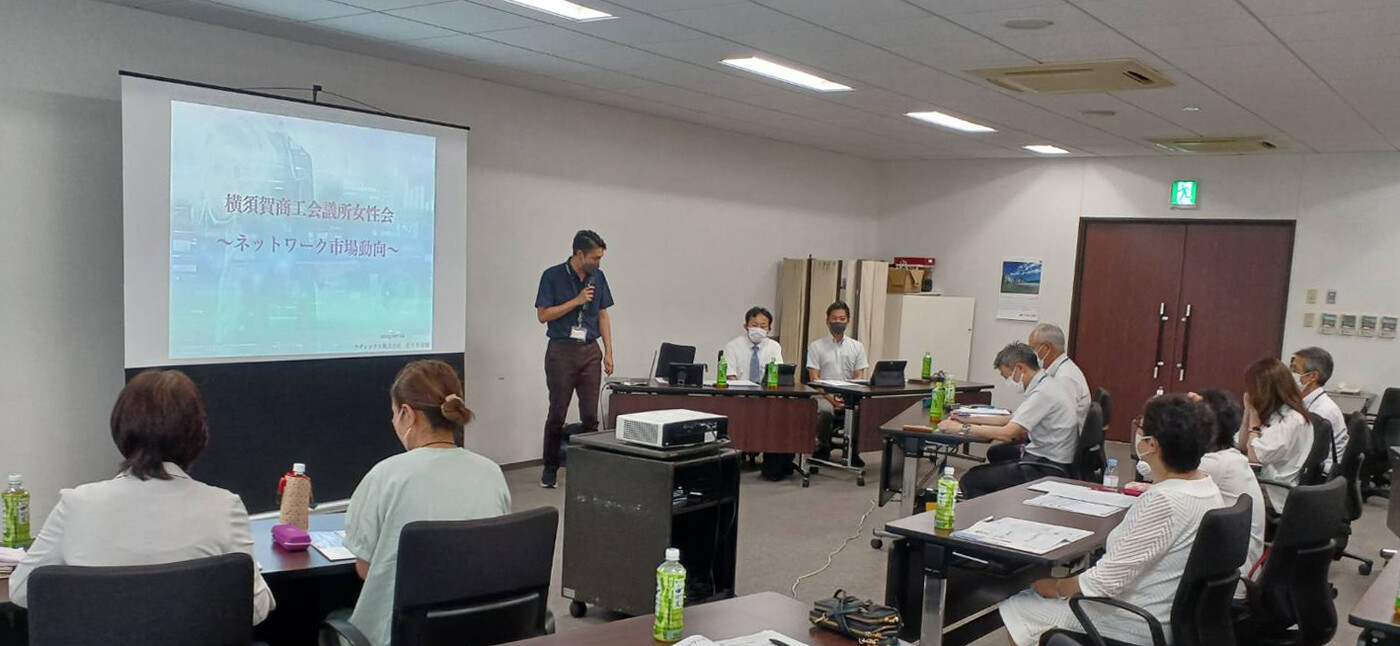 横須賀商工会議所女性会 経営教養部会主催のセミナーが、横須賀商工会議所にて開催いたしました。これからのネットワーク市場動向がどの様な未来社会になるかを想像し、今私たちがどの様な形でネットワークと向き合っていくかを考えるため、講師としてラディックス株式会社の佐々木康輔氏に話を伺いました。