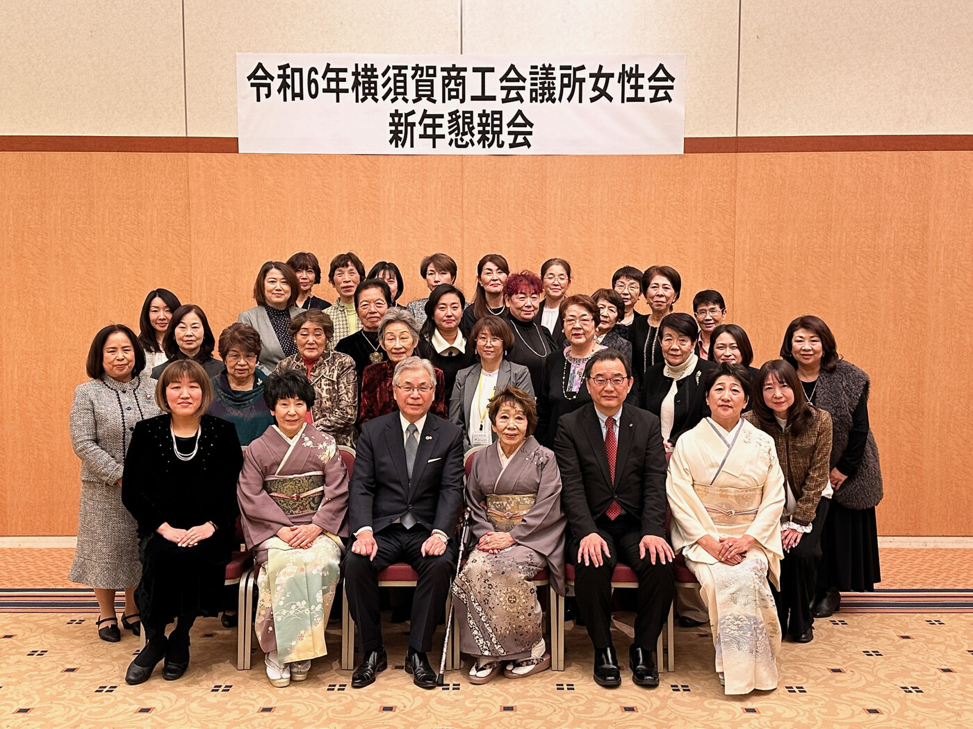 横須賀商工会議所女性会の新年懇親会が、令和6年1月25日にメルキュール横須賀にて開催されました。会長の新年のご挨拶より始まり、横須賀商工会議所会頭のお言葉をいただきました。また今年度、新たに新会員になられた方々の紹介と挨拶も、順番に行われました。