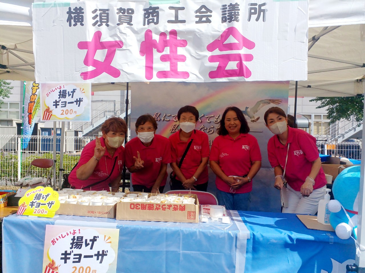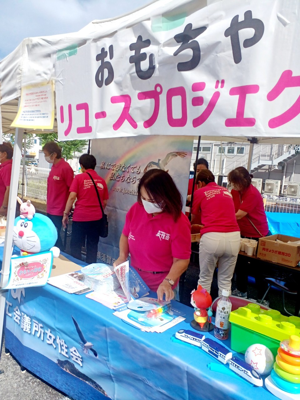 前日より危ぶまれていた天候も当日は晴天に恵まれ、のべ5000名もの御来場をいただきました。女性会は抽選会の実施とブース出展、さらに横須賀市の協力によりおもちゃリユース窓口も設置致しました。ブース出展では、女性会会員スタッフが協力して揚げ餃子と揚げパスタの販売をしました。抽選会での景品は全て関係者や会員の協賛によるもので、ご協力いただいた事業所及び関係各者様に心よりに感謝申し上げます。