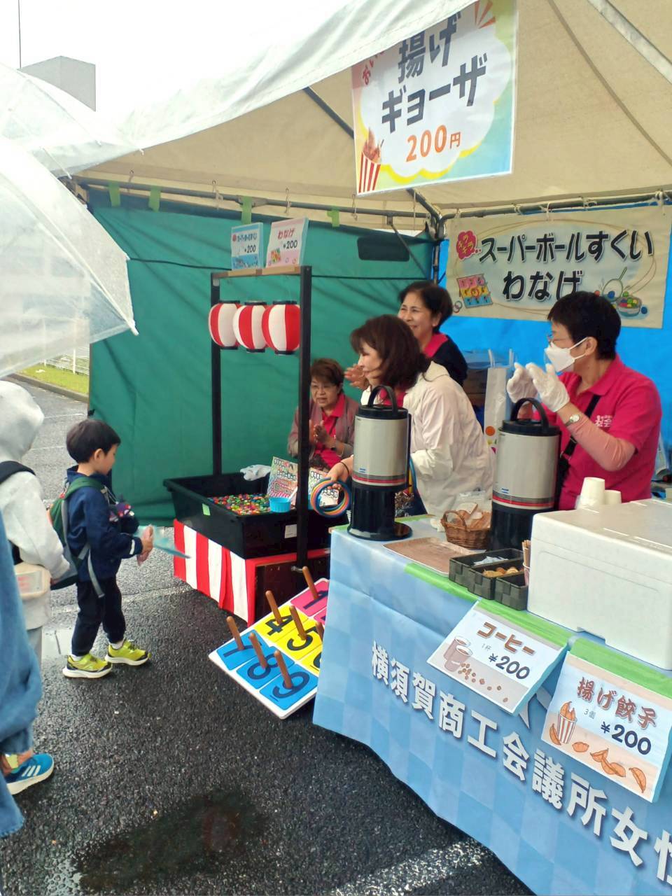 女性会は今年もブース参加させていただきました。サスティナブルを意識して誰かにとっての不用品を、誰かにとっての用品にとフリーマケットと、おもちゃリユース活動ということで使わなくなったおもちゃの回収、昨年大好評だった揚げ餃子の販売とニーズのあったコーヒーの販売、子供向けのイベントなど盛りだくさんで参加いたしました。